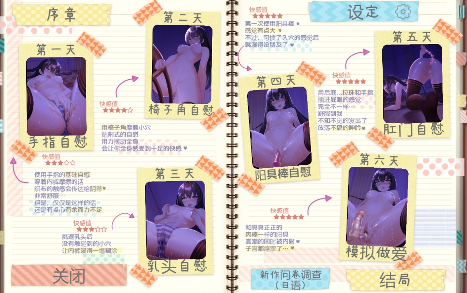 这是一款由[dobuworks]社团制作的日式SLG游戏~主打“自我发电”(就是自慰)的神奇游戏!一脸严肃的学生会长每天在家里面居然偷偷写下流至极的日记?而且还详尽的记录了每天各种花式玩法,工口时间,甚至还有爽后感(小时候我连读后感都写不出来……)