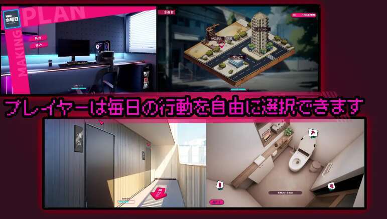 这是一款模拟偷拍直播室管理员日常的游戏。每日白天的行动选择旨在确保夜晚直播顺利进行。